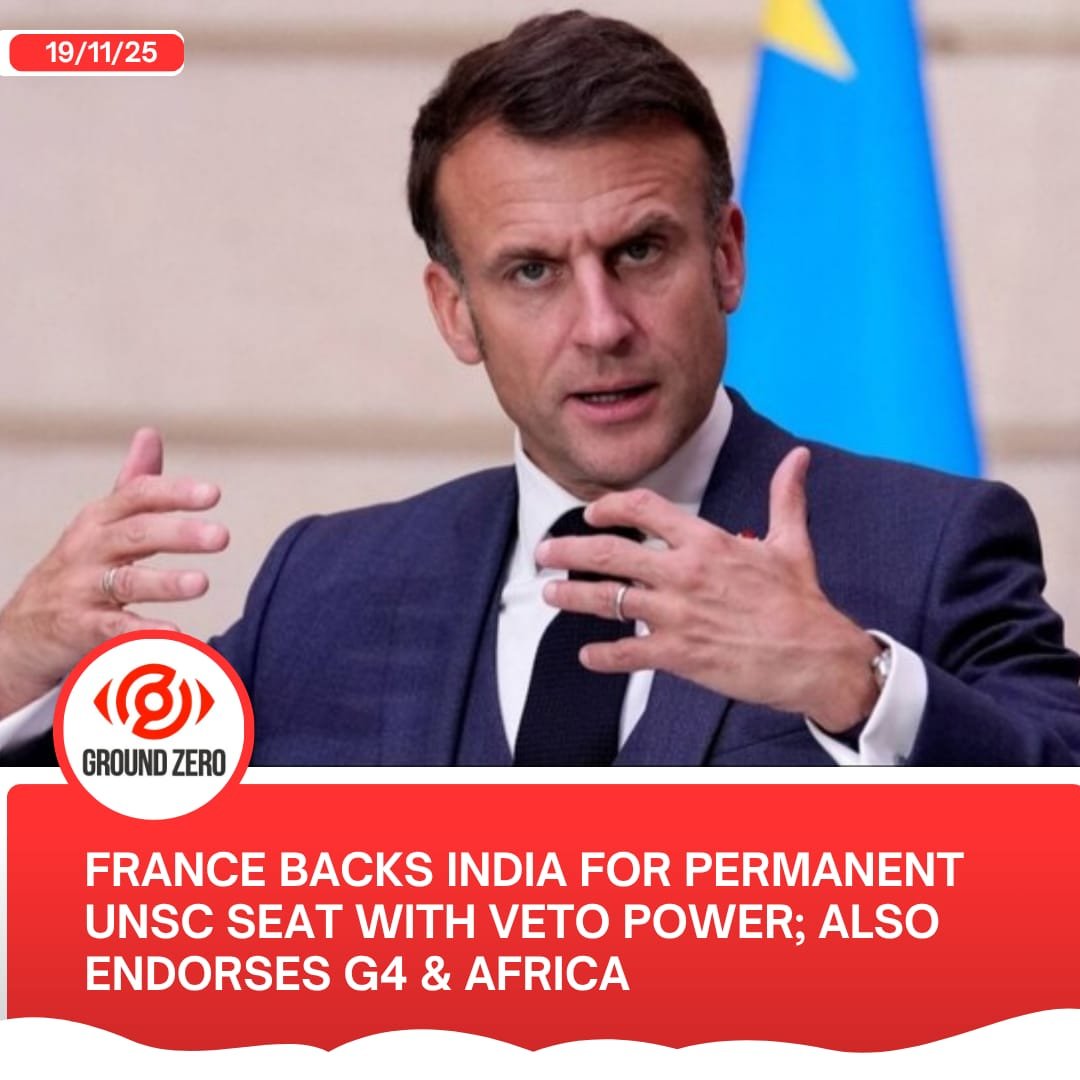 In a significant move on the global diplomatic stage, France has publicly supported India’s bid to become a permanent member of the UN Security Council (UNSC) with veto power. Beyond India, Paris has thrown its weight behind other G4 nations: Japan, Germany, and Brazil signalling strong confidence in their leadership roles on the world stage.