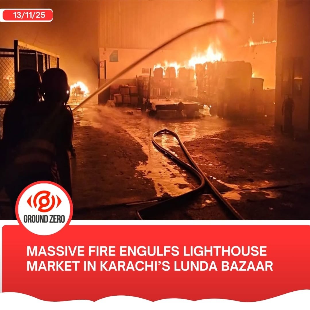A massive fire broke out at the Lighthouse Market in Karachi’s Lunda Bazaar, located on MA Jinnah Road. According to Pakistani media, the blaze began in a warehouse storing slippers and quickly spread to nearby stalls and shops. Firefighters rushed t...